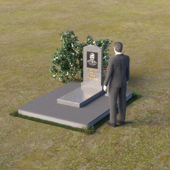 Благодаря своей лаконичной форме, эта стела предоставляет широкие возможности для оформления. Портрет усопшего будет гармонично смотреться как в верхней части стелы, так и чуть ниже центра. Золотое тиснение имени и дат жизни будет элегантно выделяться на фоне полированного камня, создавая четкий и легко читаемый образ. Небольшая тумба, расположенная перед стелой, может служить местом для возложения цветов и памятных вещей. Мы рекомендуем выбирать для этой модели сдержанные, лаконичные шрифты, которые подчеркнут общую элегантность композиции. Подумайте о возможности добавления небольшого бронзового барельефа или скульптуры, отражающей профессию или увлечения ушедшего человека. Это добавит индивидуальности и сделает место памяти еще более личным и значимым. Ваза, выполненная в едином стиле с монументом, завершит композицию и придаст ей законченный вид.
