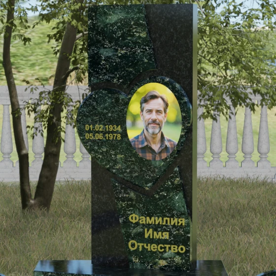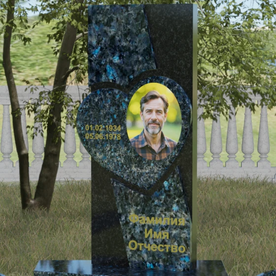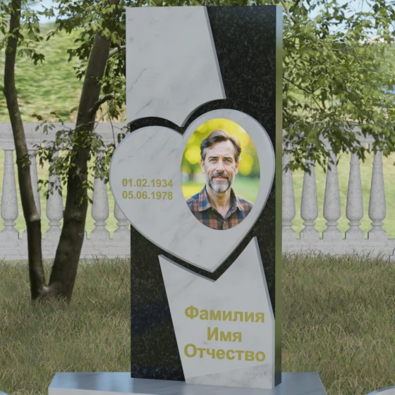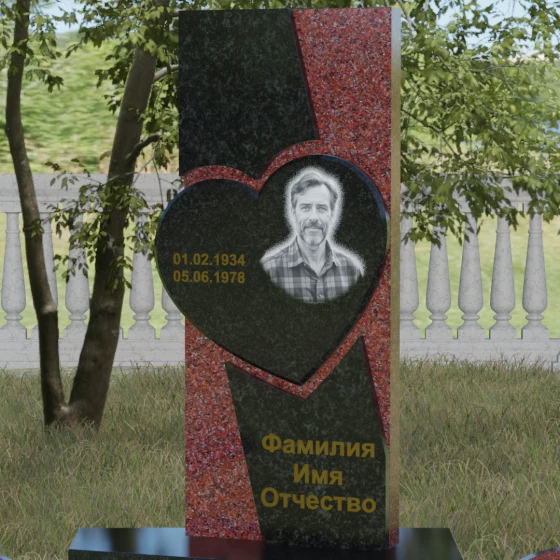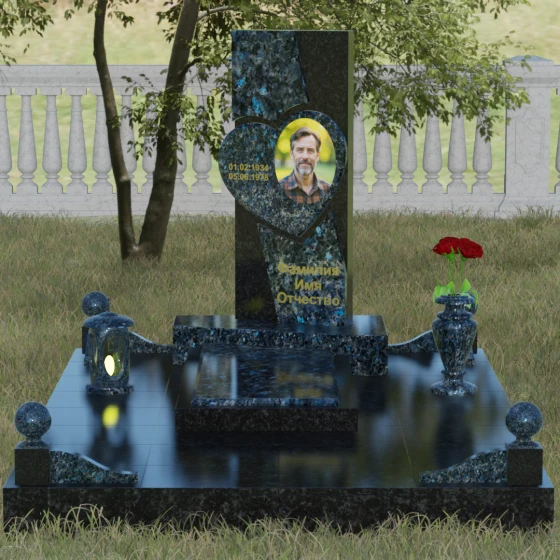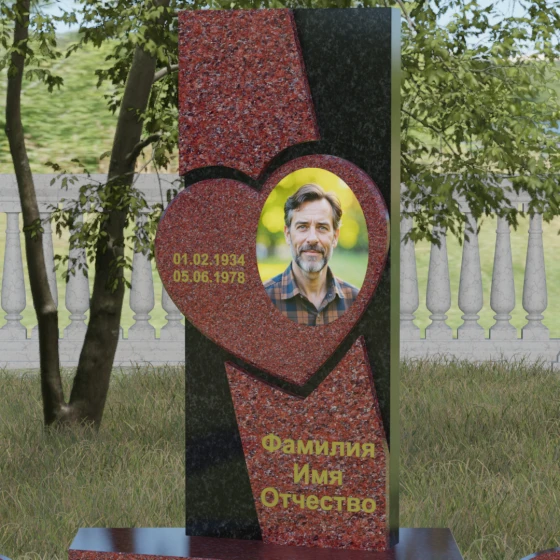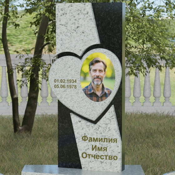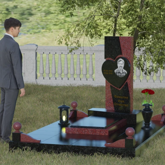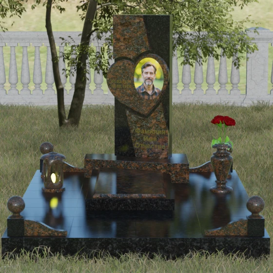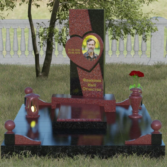 Кому подойдет: Данная модель является универсальной, однако за счет центрального символа — сердца — чаще всего выбирается для оформления женских захоронений. Она станет достойным выражением любви и вечной памяти для матери, супруги, дочери или сестры. Сложная геометрия и наличие декоративных элементов (вазы, шаров) делают это ритуальное изделие идеальным выбором для тех, кто ищет современный, эстетически насыщенный мемориал, сочетающий в себе европейский стиль и традиционную прочность натурального камня.