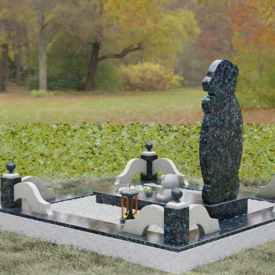 Для реализации этой идеи мы предлагаем выбор из 8 изысканных цветовых решений. В зависимости от желаемого настроения, вы можете выбрать один из семи видов гранита: строгий Габбро-диабаз, благородный Дымовский, контрастный Амфиболит, нежный Мансуровский, величественный Лезниковский, глубокий Baltic Green или мерцающий Blue Pearl. Также доступно исполнение из белоснежного мрамора Тассо. Такое многообразие позволяет подобрать камень, который будет максимально точно отражать характер и внутренний мир близкого человека, создавая по-настоящему персонализированный облик мемориала.