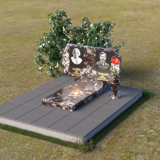 Оформление: Для этой формы стелы идеально подойдет гравировка портретов в овальной или прямоугольной рамке. Имена и даты жизни можно расположить под портретами, используя золотой или серебряный шрифт. Дополнительно можно добавить эпитафию, выражающую любовь и скорбь. Не перегружайте композицию лишними деталями – лаконичность и сдержанность подчеркнут достоинство и элегантность памятника.