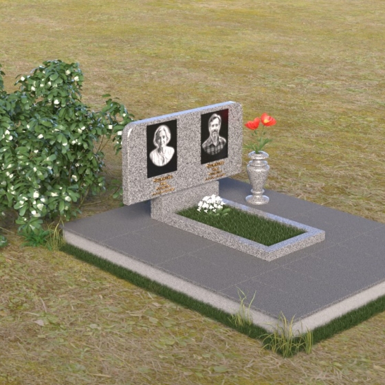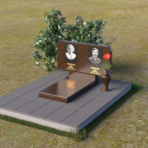 Оформление: Для данной формы стелы идеально подойдет гравировка портретов в овальной или прямоугольной форме. Расположение портретов может быть как симметричным, так и асимметричным, в зависимости от ваших предпочтений. Имена и даты жизни рекомендуется располагать под портретами, используя элегантный шрифт с засечками. Также можно добавить эпитафию, отражающую личность усопшего и вашу любовь к нему.