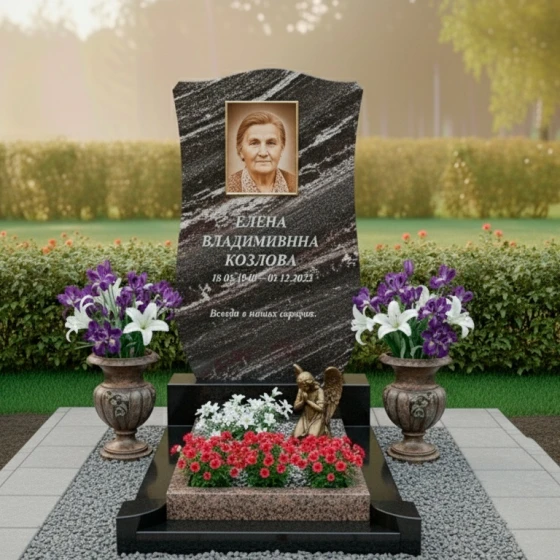 Выбор материала для ритуального изделия — это не просто эстетическое решение, но и залог долговечности памяти. Представленная модель доступна в восьми роскошных цветовых решениях, включающих семь видов гранита и один вид мрамора. Каждый из этих камней обладает уникальными свойствами, позволяющими подобрать идеальный вариант, отражающий индивидуальность и характер ушедшего человека.