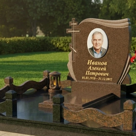 Основной материал, используемый для создания этой мемориальной композиции, — это высококачественный гранит, известный своей исключительной плотностью и долговечностью. Гранит — это магматическая порода, сформировавшаяся в глубинах земли под огромным давлением, что придает ему уникальные физические свойства. Его плотная структура обеспечивает высокую устойчивость к механическим повреждениям, сколам и царапинам. Морозостойкость гранита позволяет ему выдерживать самые суровые климатические условия, сохраняя свою первозданную красоту на протяжении веков без признаков разрушения или выветривания. Зеркальная полировка, выполненная нашими мастерами, не только придает камню благородный блеск, но и создает защитный слой, предотвращающий проникновение влаги и загрязнений в поры камня. Это гарантирует, что мемориальная композиция будет сохранять свой безупречный вид и глубокий цвет долгие годы, практически не требуя специального ухода, кроме периодической очистки. Выбирая гранит, вы выбираете вечность, воплощенную в камне.