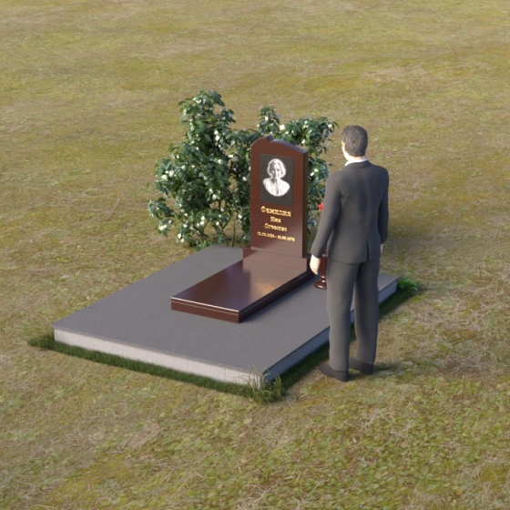 Форма арки, использованная в верхней части стелы, символизирует небесный свод, защиту и покровительство высших сил. Она создает ощущение покоя и умиротворения, напоминая о вечном пристанище души. Прямоугольное основание, напротив, олицетворяет земную твердь, незыблемость памяти и преемственность поколений. Сочетание этих двух форм создает гармоничный образ, объединяющий земное и небесное, временное и вечное. Зеркальная полировка камня символизирует чистоту помыслов и искренность чувств, которые испытывают близкие к ушедшему. Этот памятник – не просто знак скорби, а символ надежды и веры в бессмертие души.